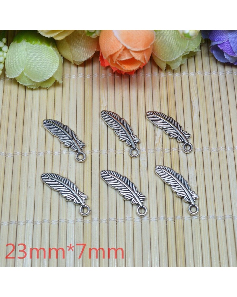Nincs szín - 30db tibeti ezüst toll bűbáj medál gyöngy ékszer készítés 23x7mm