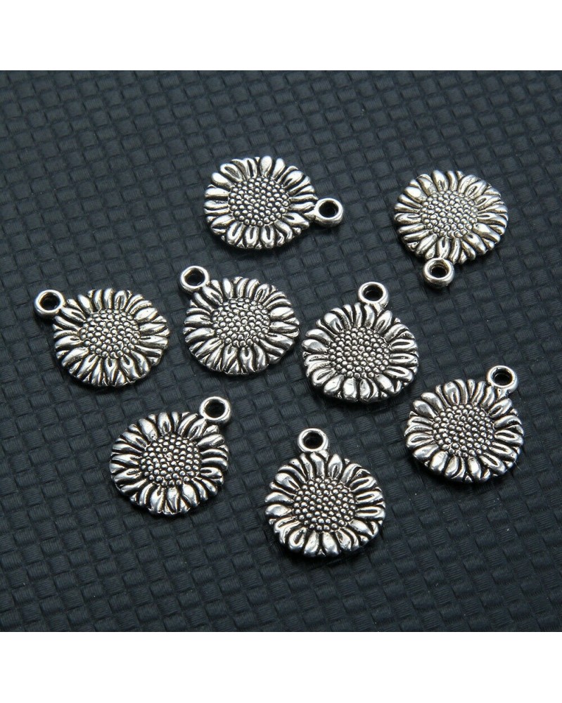 Nincs szín - 10db 15 * 12mm napraforgó varázsa Antiuqe ezüst tónusú medálgyöngy készítés