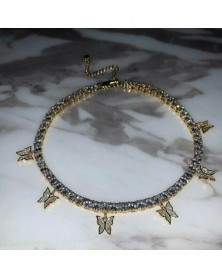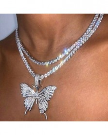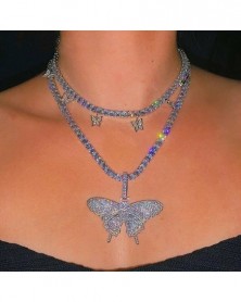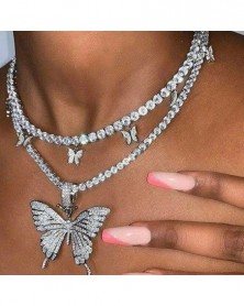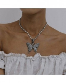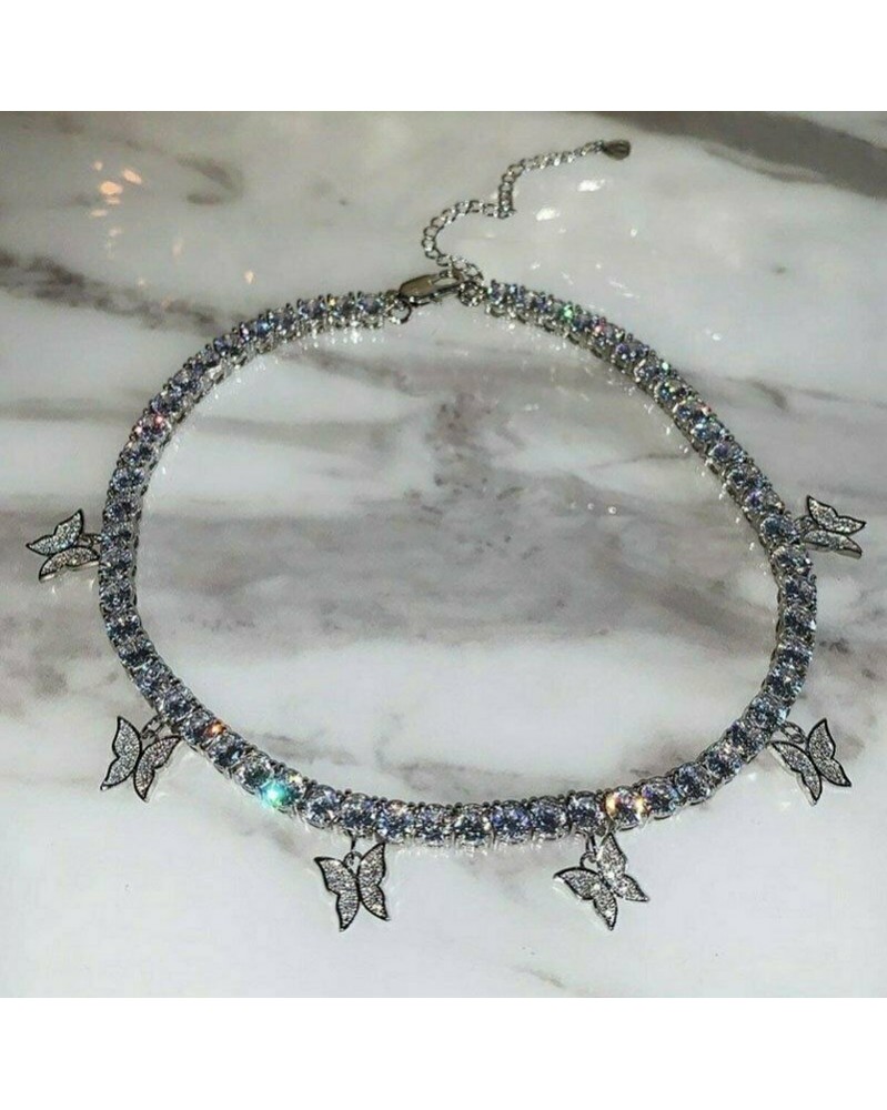 Choker-Silver - Divat pillangó medál nyaklánc strasszos pulóver lánc női kristály fojtó