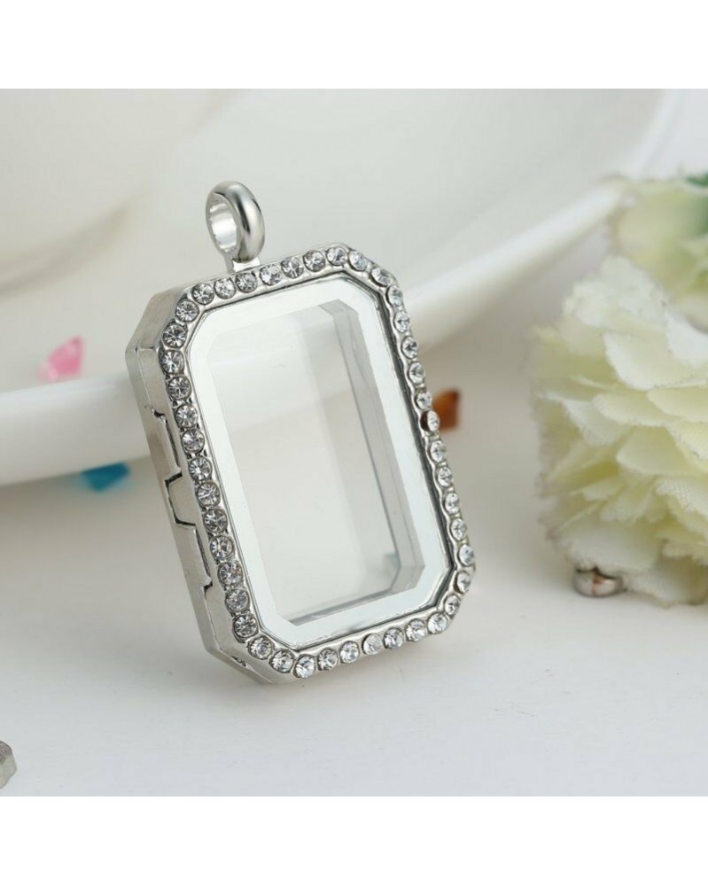 Nincs szín - Ezüst úszó varázsa élő memória négyzet alakú kristályüveg tokos nyaklánc medál