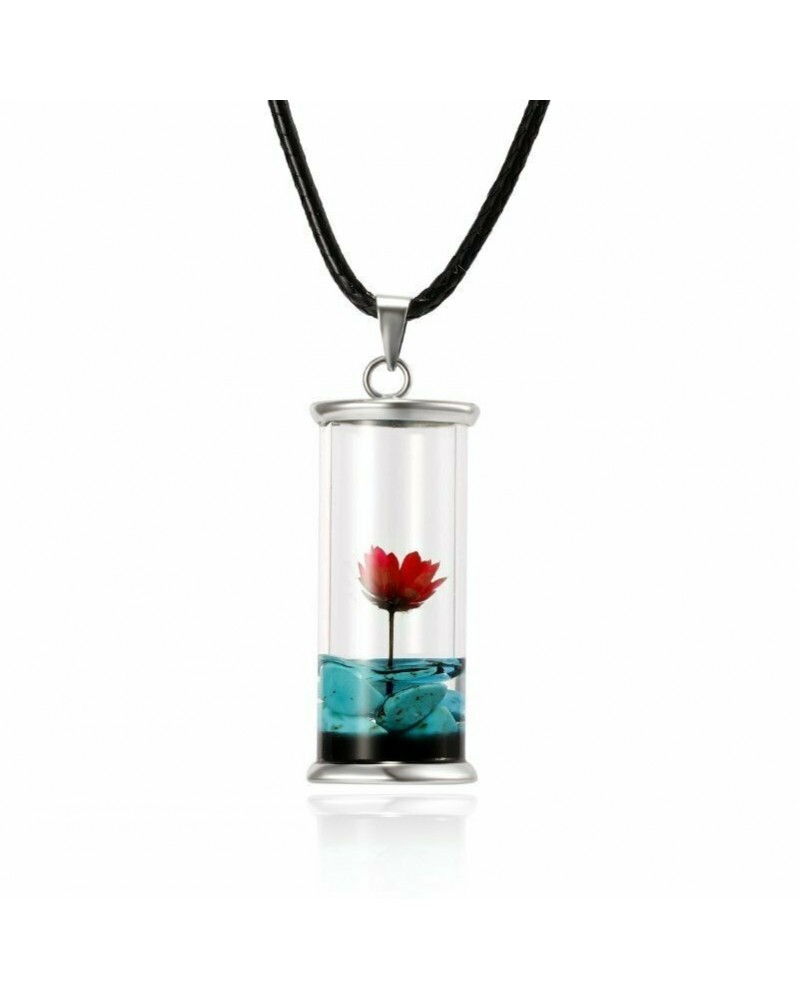 Üvegpalack-piros - Százszorszép szárított virág sodródó üvegpalack kívánó bőr medál nyaklánc nők forró