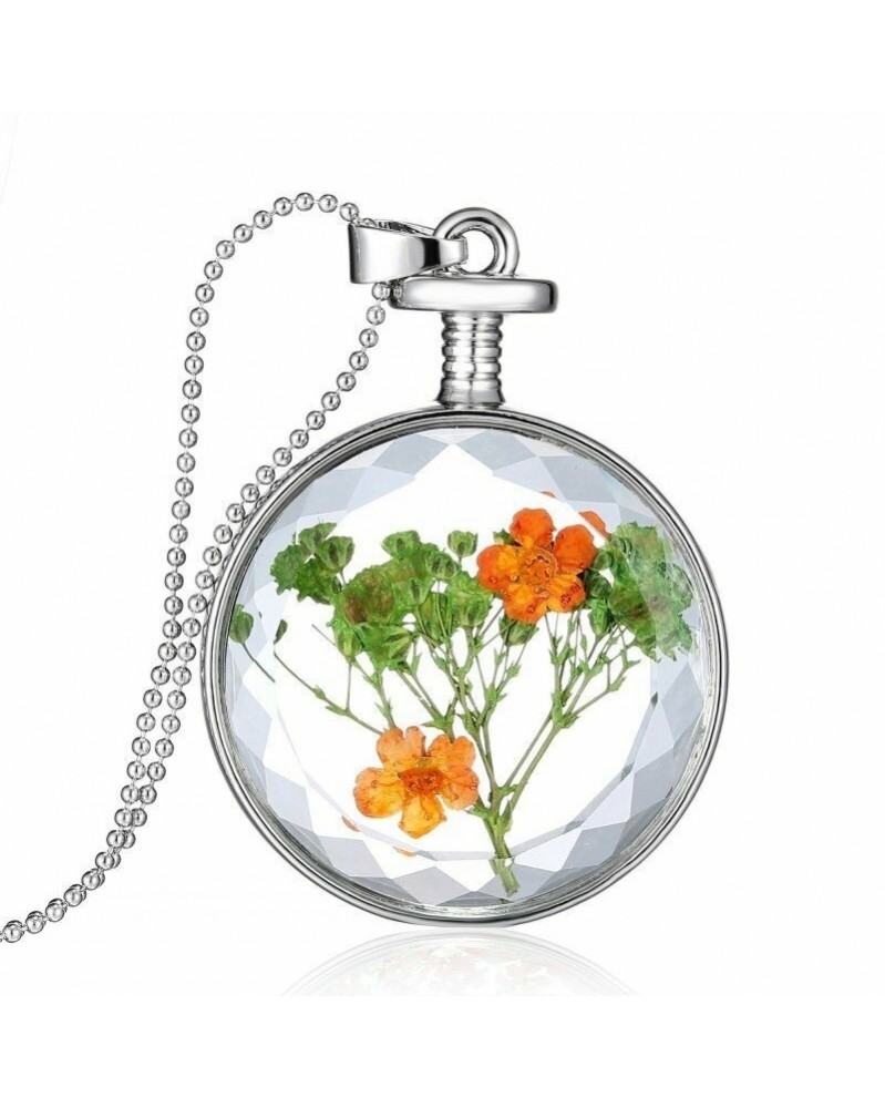 38 körös ezüstzöld - Divat természetes szárított virág valódi rózsa medál nyaklánc szív üvegzsebbel nők