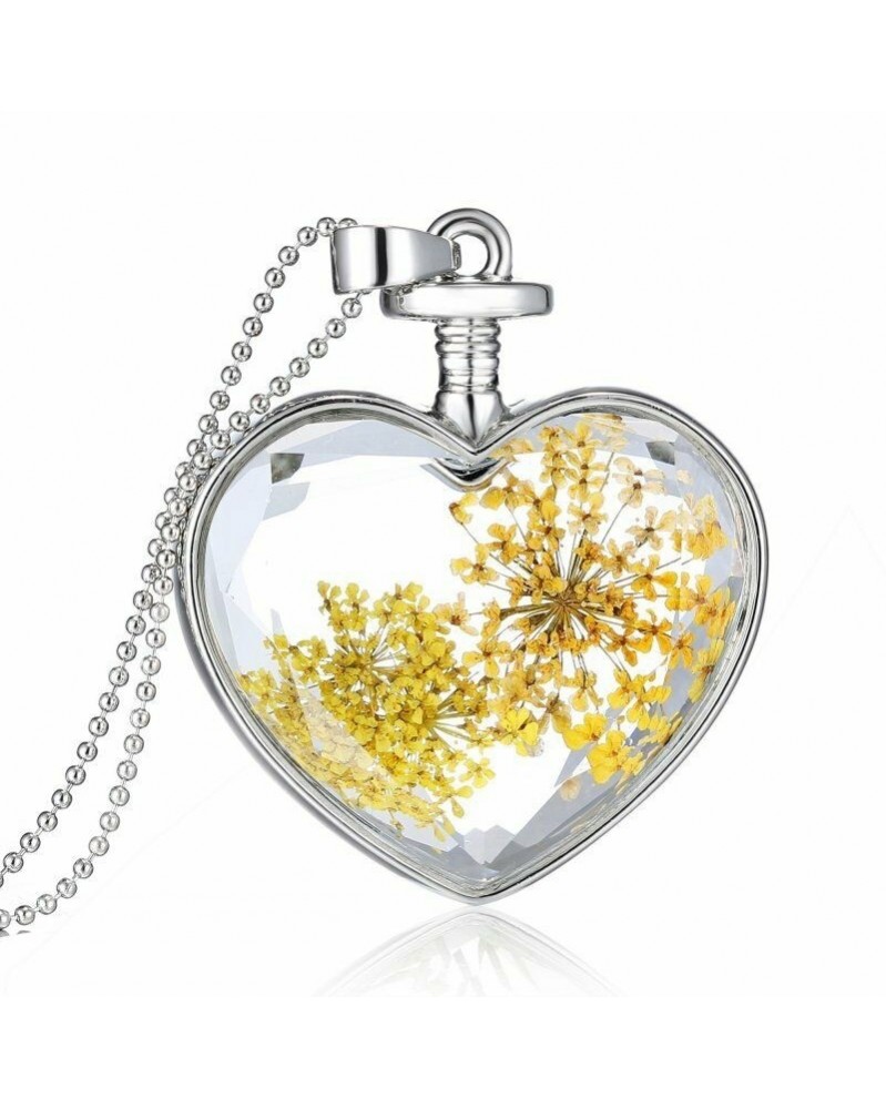 43-szív ezüst sárga - Divat természetes szárított virág valódi rózsa medál nyaklánc szív üvegzsebbel nők