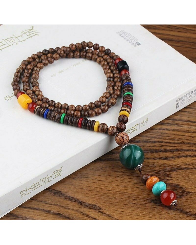 Zöld Achát gyöngyök - Retro Nepál gyöngyök tibeti buddhista Mala pulóver medál nyaklánc ékszer nők