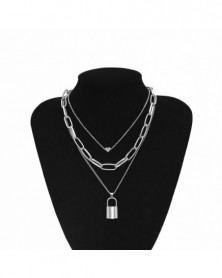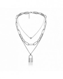Zár-ezüst (42 8 cm) - Többrétegű láncos hip-hop nyaklánc szívzáras női punk rock lakat medál