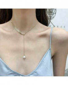 Y-alakú - Divatgyöngylánc arany levél búza hosszú medál nyaklánc choker női medál