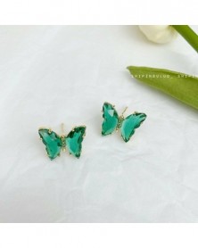 Fülbevaló-lila - Kristály pillangó fülbevalók Stud nyaklánc gyűrű cukorka színű rovar divat nők