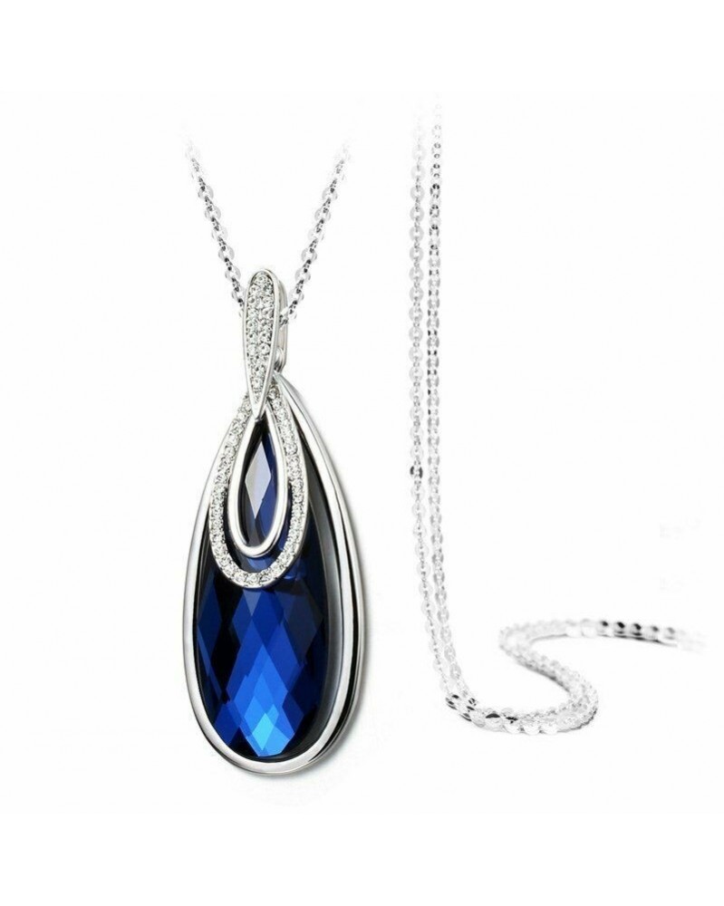 Vízcsepp kék - Geometrikus tér hosszú medál nyaklánc pulóver üreges női divat ékszer ajándék