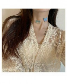 Kék - Elegáns pillangó fekete fojtó nyaklánc kulcscsont lánc személyre szabott női párt