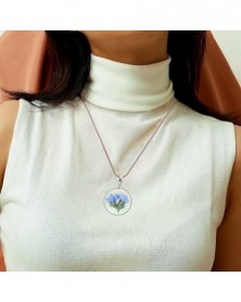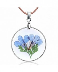 30 kör arany rózsaszín és kék - Kézzel készített természetes szárított kerek kék virág üveg medál nyaklánc női