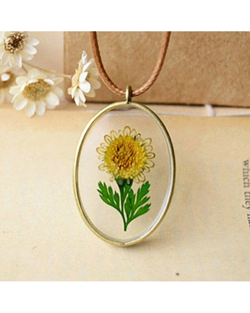 Handmade True dried flower Living memory Glass necklace