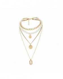 Nincs szín - Többrétegű gótikus aranyérme gyöngy kulcscsont lánc medál choker nyaklánc nők