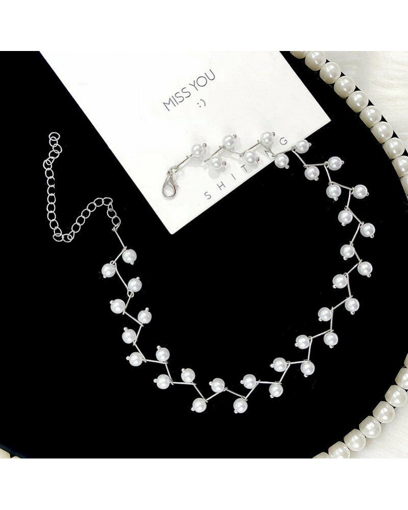 Gyöngyfojtó ezüst (41cm) - Pearl Choker medál nyakláncok, arany ezüst kulcscsont lánc női esküvő