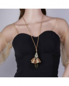 Fekete bojt - Retro Boho bojtok Előke Bohémia Medál Nyaklánc Bőr Hosszú Lánc Női Buli