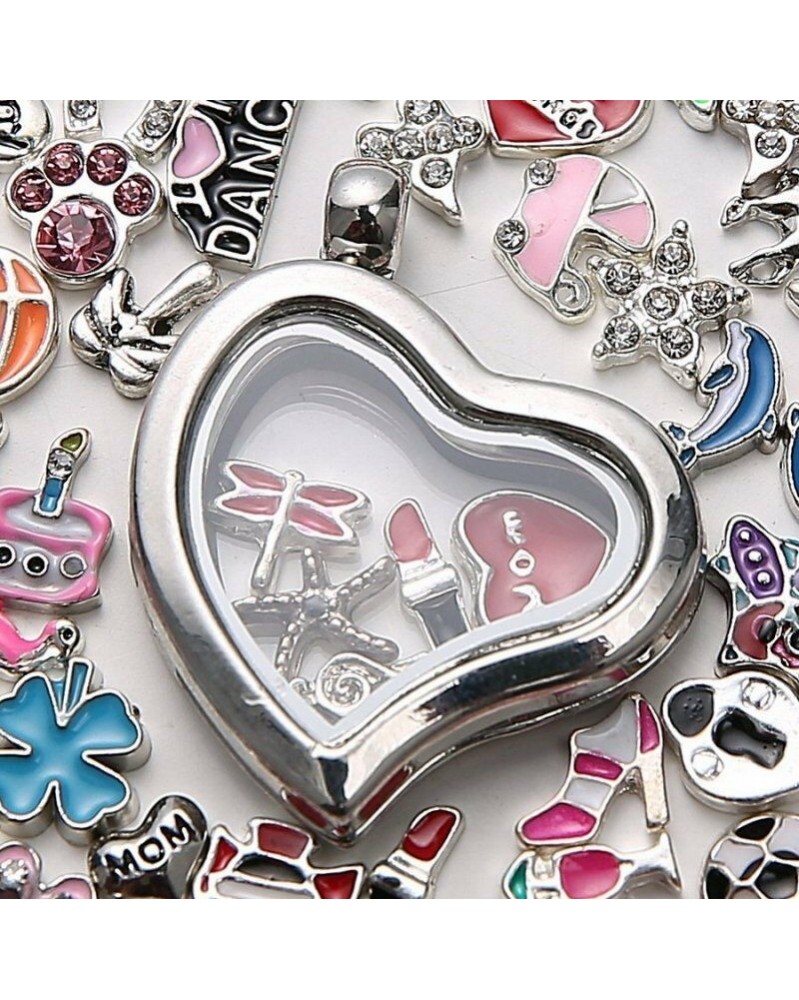 Szív Ezüst - Több lebegő varázsa kristályüveg szívbőr nyaklánc medál gyöngyös lánc