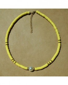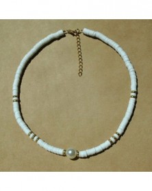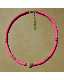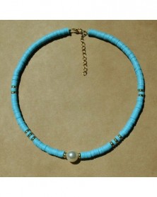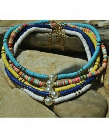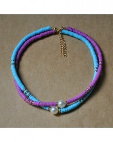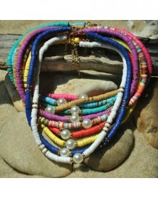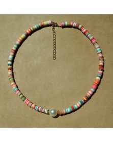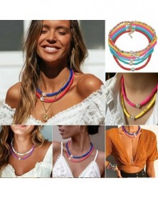 Zöld - Boho Multicolor Pearl Polymer Clay Choker gyöngy medál nyaklánc női strand meleg