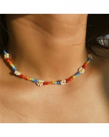 fehér - Boho színes maggyöngy virág fojtó nyaklánc nyilatkozat gallér kulcscsont nők