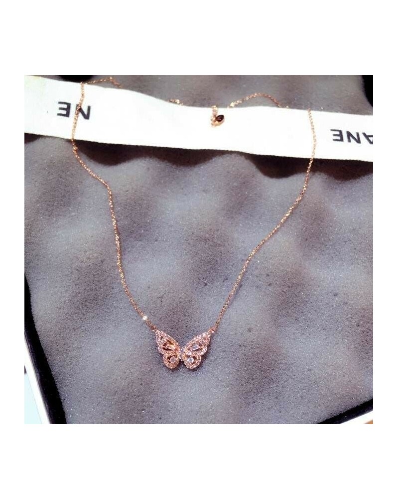 Rózsa - Divat pillangó fényes kristály strasszos medál nyaklánc kulcscsont choker ajándék