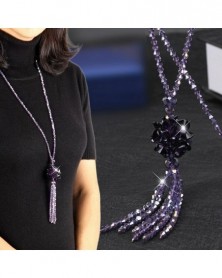 1-Kék bojt - Elegáns női kristály bojt hosszú medál nyaklánc ezüst lánc nyilatkozat fél