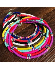 fehér - Boho többszínű polimer agyagfojtó női nyaklánc gyöngyök kerek tengerparti retro ajándék