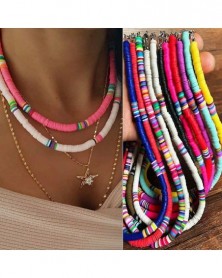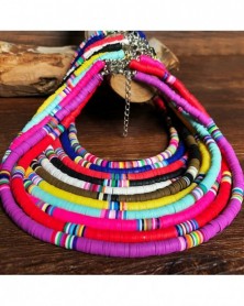 Fekete - Boho többszínű polimer agyagfojtó női nyaklánc gyöngyök kerek tengerparti retro ajándék