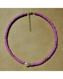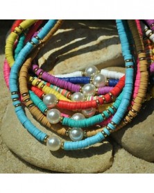 Lila - Retro Boho Pearl Polymer Clay többszínű choker nyaklánc gyöngyök női tengerparti ajándék