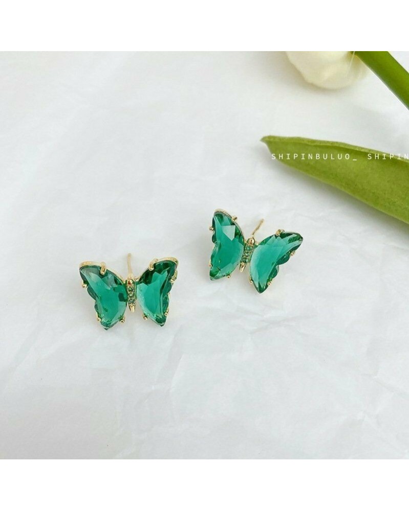 Fülbevalók-Zöld - Crystal Butterfly Stud fülbevalók nyaklánc gyűrű női cukorka színű rovar divat