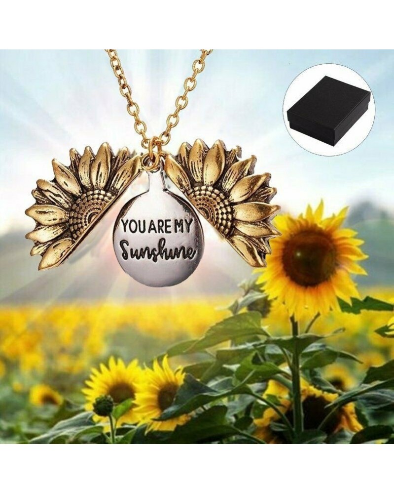 ă€YOU ARE MY SUNSHINE】 Inspired by the song of "You are my sunshine", this necklace is crafted by artisans on metal and message "You are my sunshine" hidden in sunflower locket necklace. You are my sunshine — radiating brightness and warmth into my life.