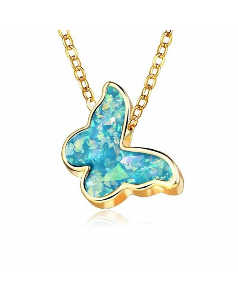 Nincs szín - Divat Sky Blue Butterfly Glitter nyakláncok Medál Arany Choker kulcscsont