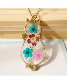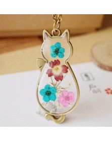 Napraforgó - Vintage természetes valódi szárított virág macska alakú állati üveg medál nyaklánc lánc