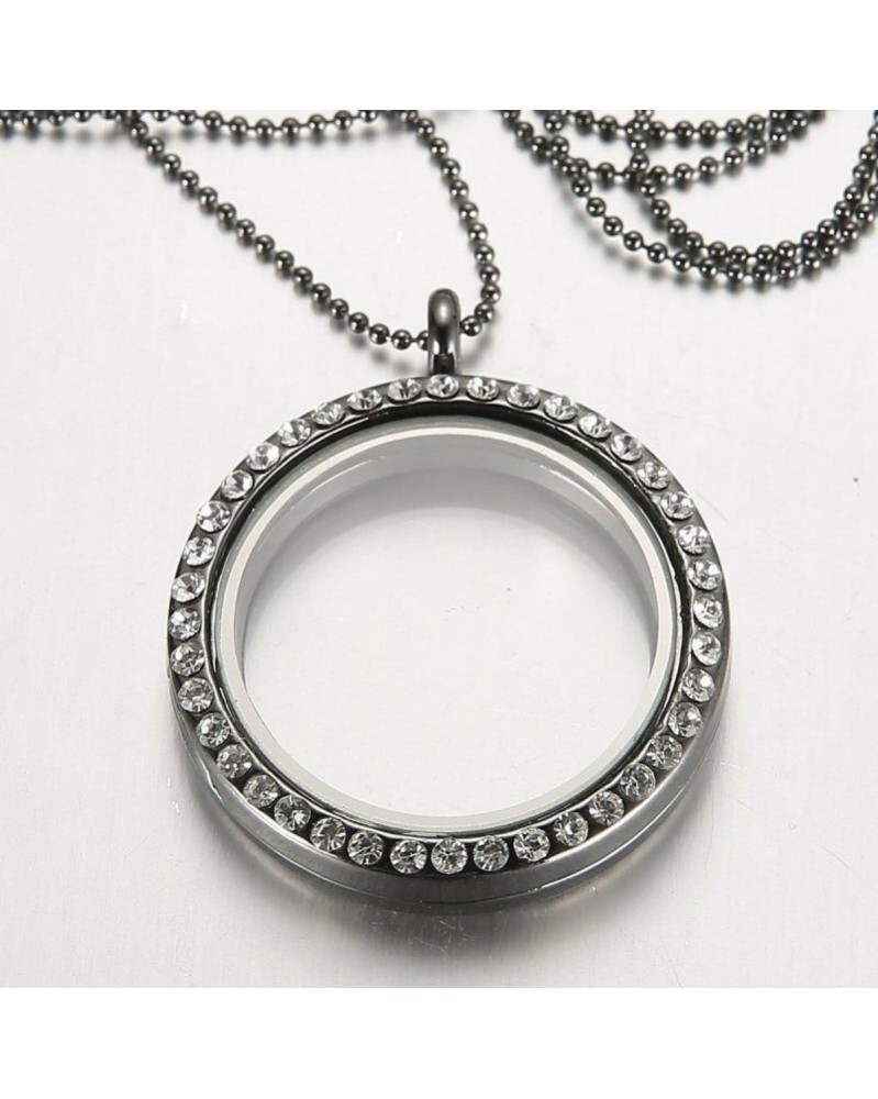 30 mm-es Crystal Locket-Gun fekete - Divat lebegő élő memória varázsa érme zseb medál nyaklánc családi ajándék