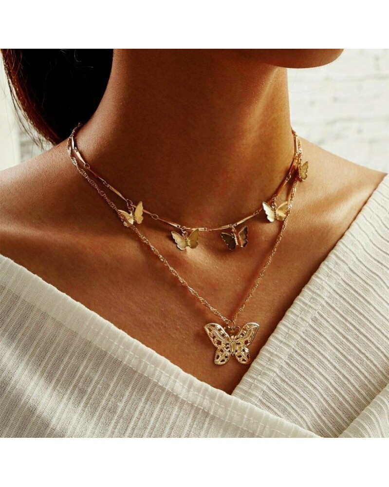 Pillangó (39 5 cm) - Mulltilayer punk arany érme gyöngy medál nyakláncok nők Bohémia hosszú nyaklánc