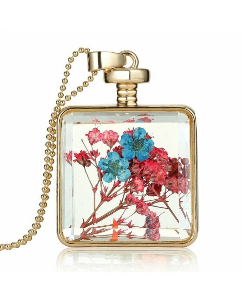 13-geometriai Colorflu - Természetes szárított valódi rózsavirág kereszt üveg medál nyaklánc báj pulóver lánc