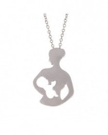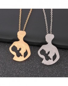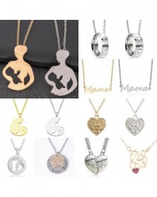 Mama levél-rózsaszín arany - Rozsdamentes acél ezüst anya szív szerelem macska szárny virág nyaklánc medál család