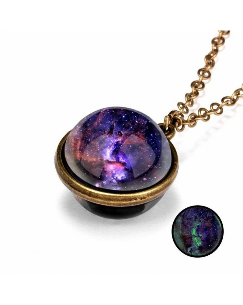 Galaxy-Purple - Világító galaxis föld ragyog a sötét köd tér üveggömb medál nyaklánc
