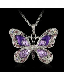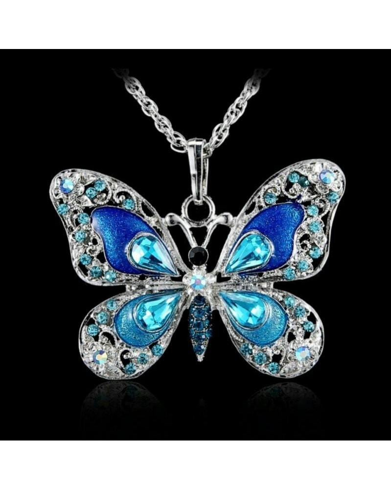 Kék - Pillangós medál nyaklánc Retro kristály strassz hosszú lánc pulóver nők forró