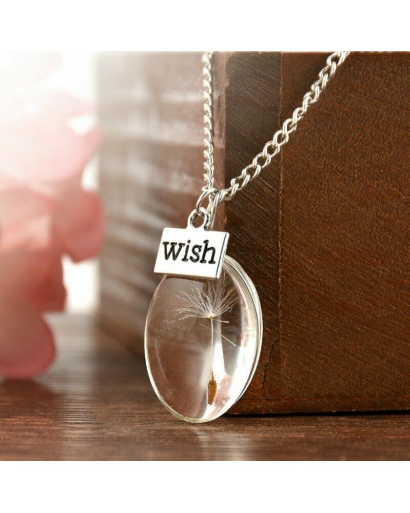 Ovális kívánságpalack - Divat kívánó üveg valódi pitypang magok szerencsés üveg medál nyaklánc lánc