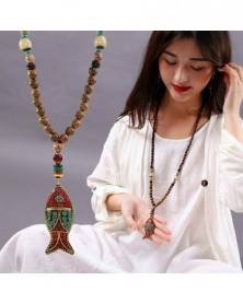 Szerencsés szimbólum - Vintage türkiz Nepál buddhista Mala gyöngyök etnikai hosszú medál pulóver nyaklánc