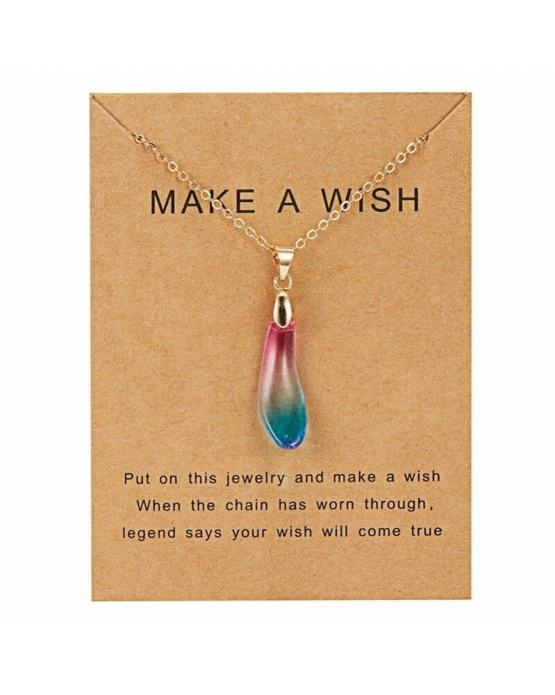 Vízcsepp-színes - Természetes kő Hold vízcsepp kártya medál nyaklánc Choker kulcscsont divatos ajándék