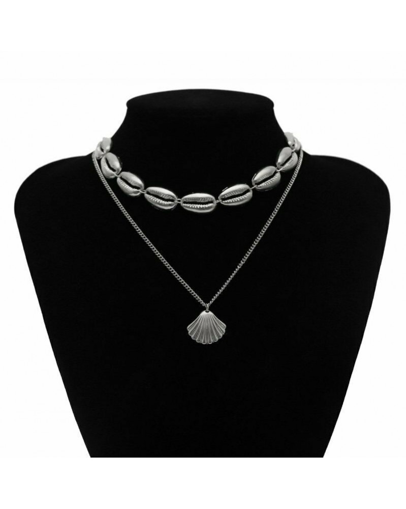 23 * Shell Ezüst - Többrétegű nők Boho kulcscsont choker medál nyaklánc varázsa lánc party divat