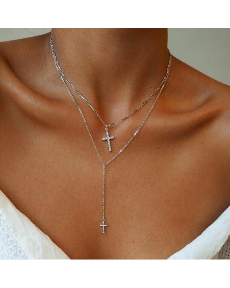 26 * Kereszt - Többrétegű nők Boho kulcscsont choker medál nyaklánc varázsa lánc party divat