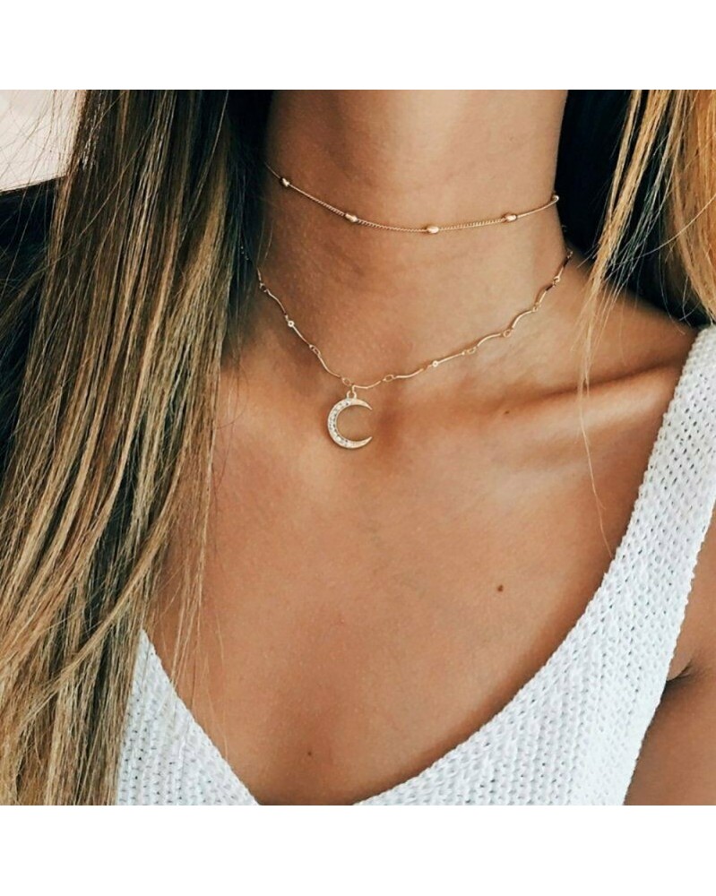 30 * Arany Hold - Többrétegű nők Boho kulcscsont choker medál nyaklánc varázsa lánc party divat