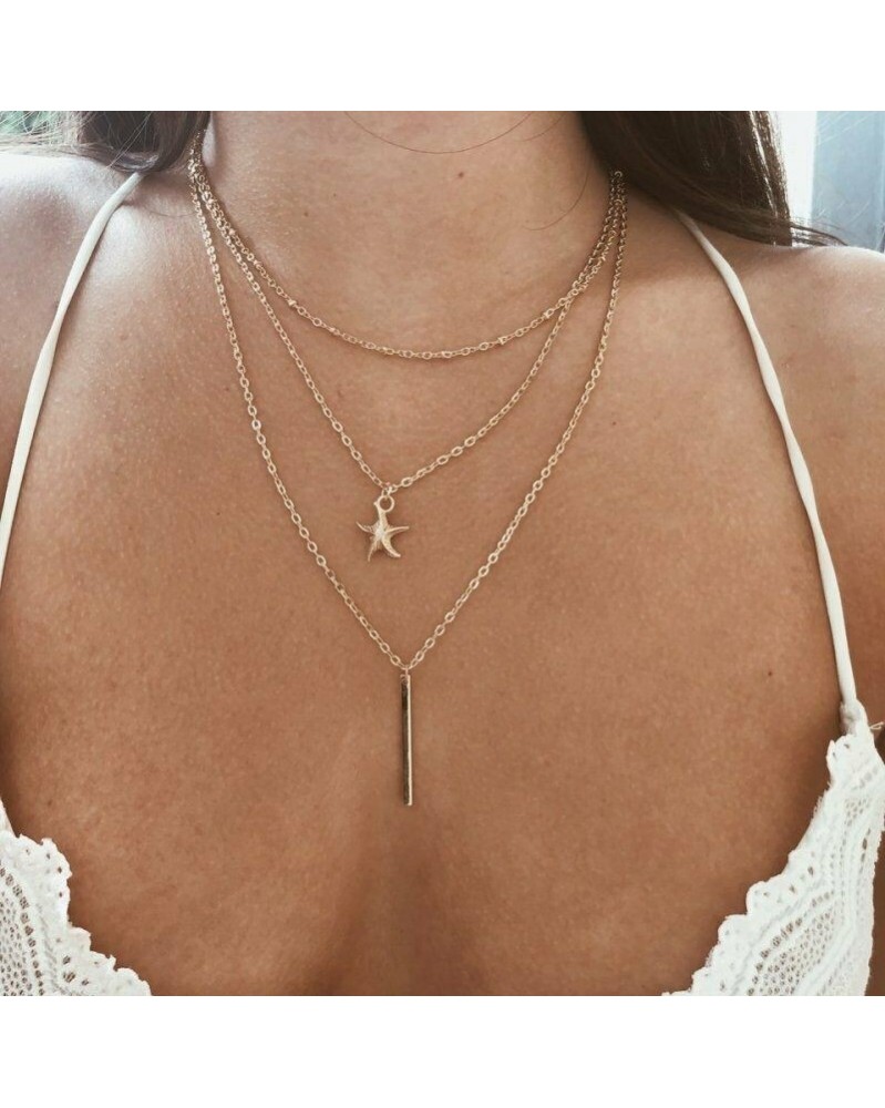 47 * Tengeri csillag - Többrétegű nők Boho kulcscsont choker medál nyaklánc varázsa lánc party divat