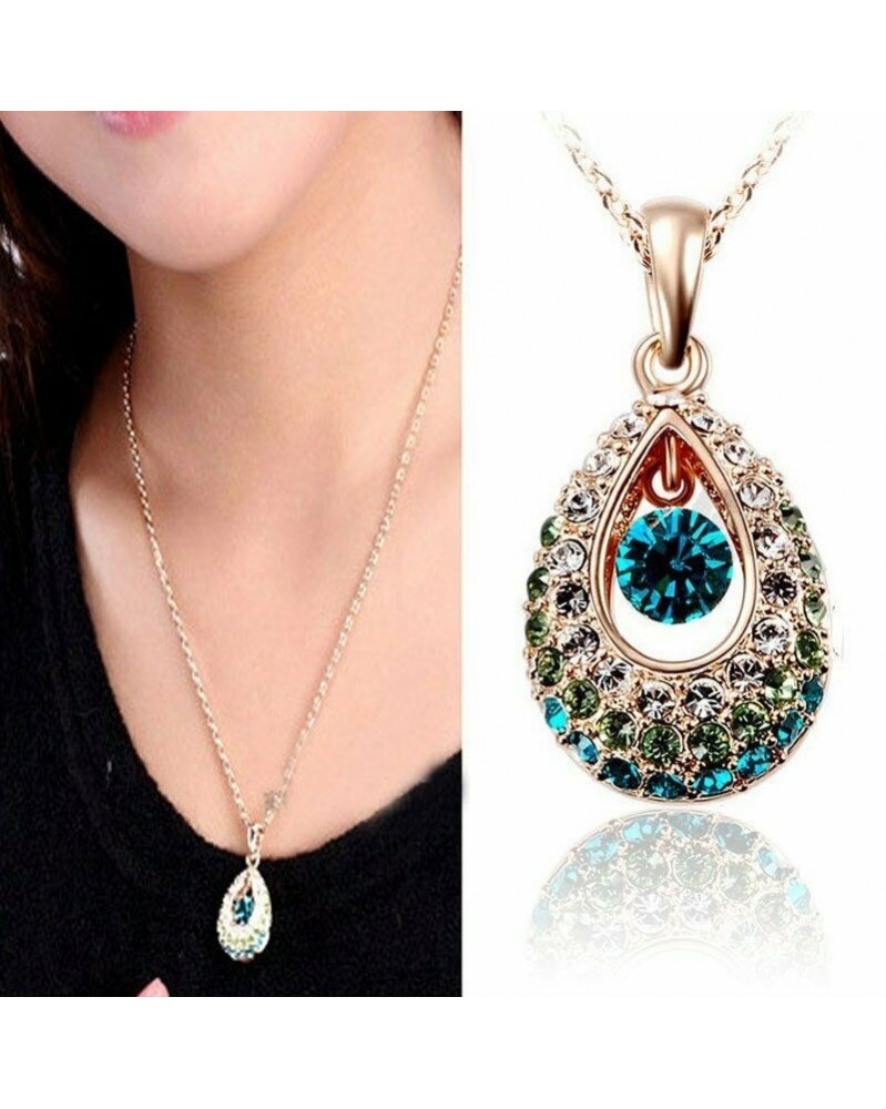 Nincs szín - Páva színű strassz verő kristály 18 k arany könnycsepp medál nyaklánc ajándék