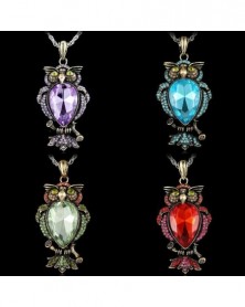 Zöld - Vintage kristály aranyos állat bagoly medál nyaklánc hosszú lánc női ékszer ajándék