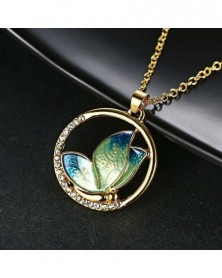 1-zöld és narancssárga - Vintage kristály strasszos pillangó állat hosszú medál nyaklánc pulóver lánc