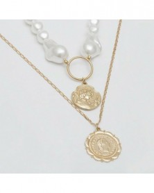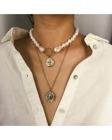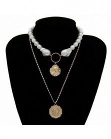 Nincs szín - Punk többrétegű szimulált gyöngy érme fojtó nyaklánc gallér nyilatkozat medál