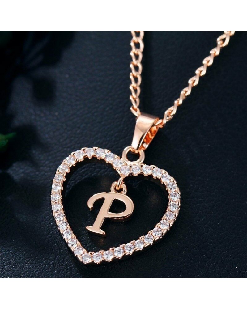 17. stílus P betű - Elegáns kristály kezdeti ábécé betű AZ szerelem szív medál nyaklánc lánc varázsa