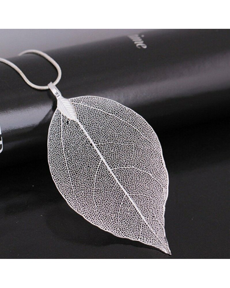 Fehér arany reszel - Divat női levelek levél pulóver medál nyaklánc hosszú lánc báj ékszer ajándék