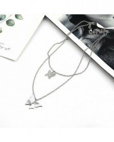 Ezüst - Üreges állat dupla pillangó kulcscsont lánc női fojtó medál nyaklánc ajándék